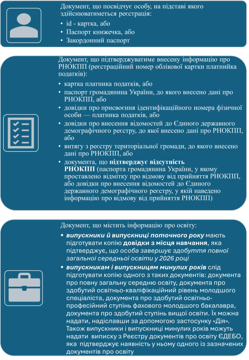 Участь у зовнішньому оцінюванні може взяти особа, яка має повну загальну середню освіту або здобуде її в поточному навчальному році та зареєструвалася відповідно до встановлених вимог.